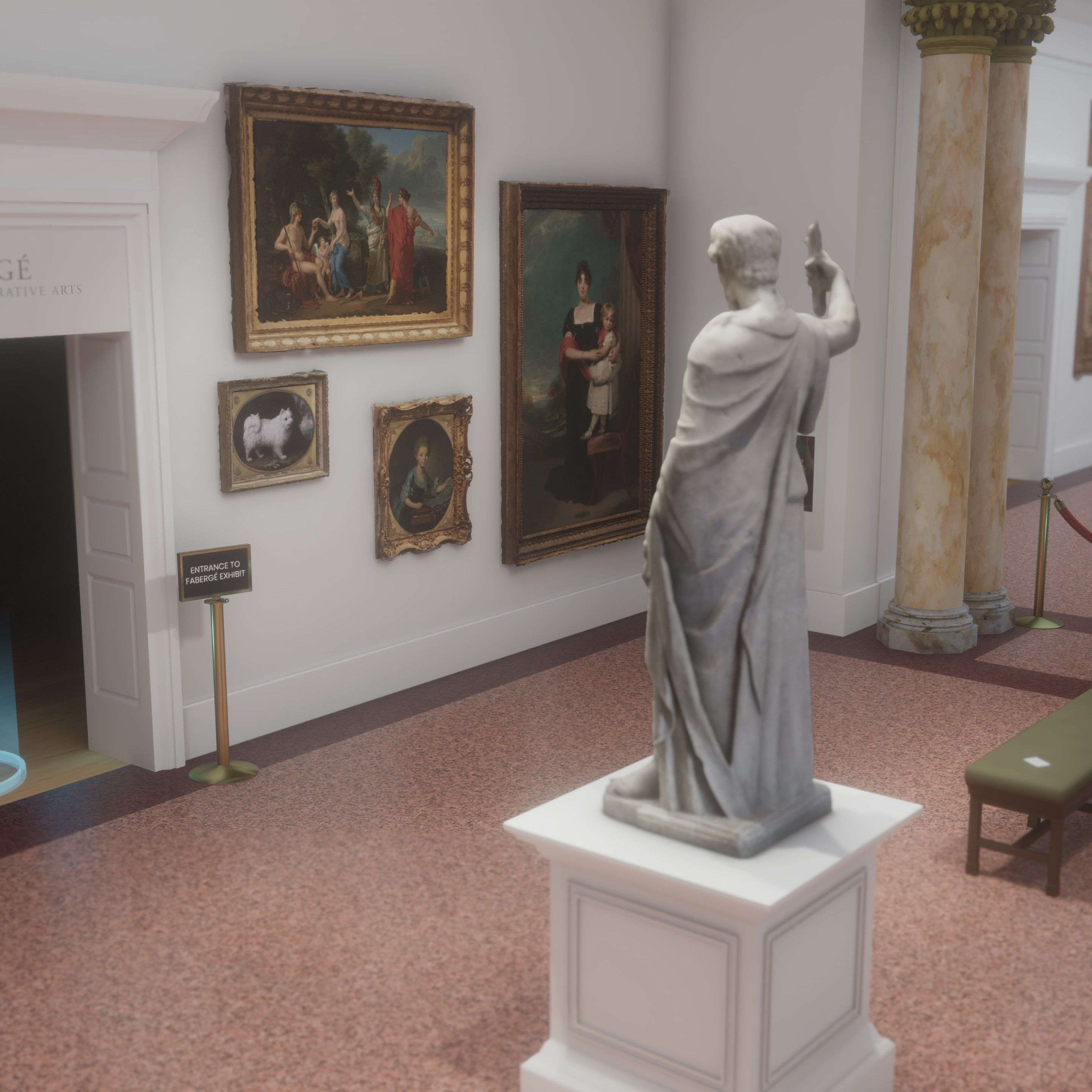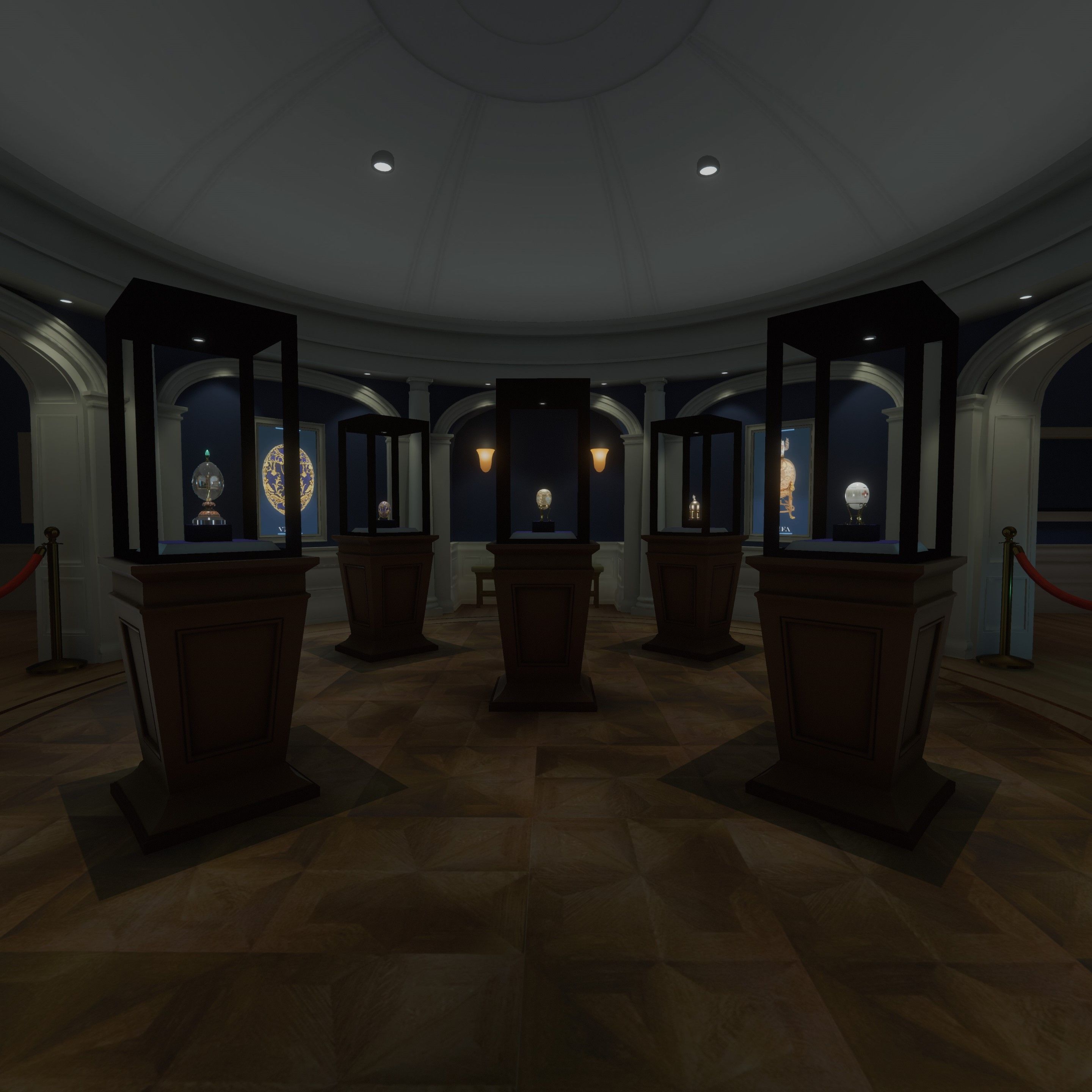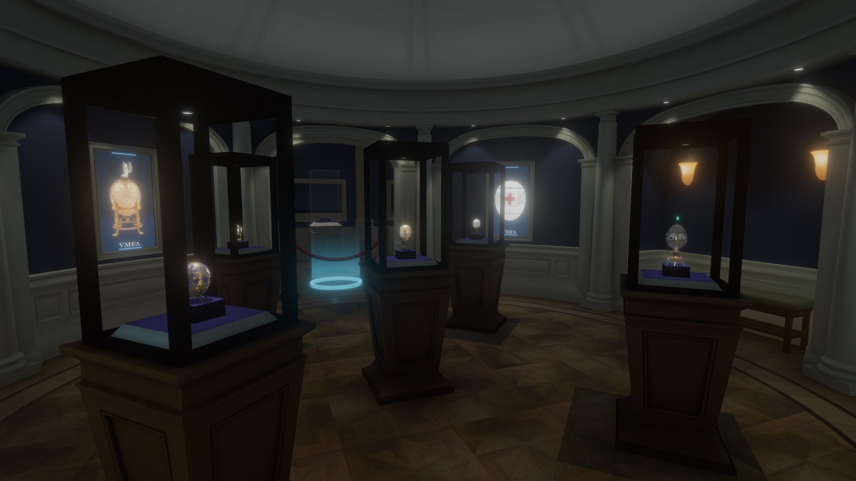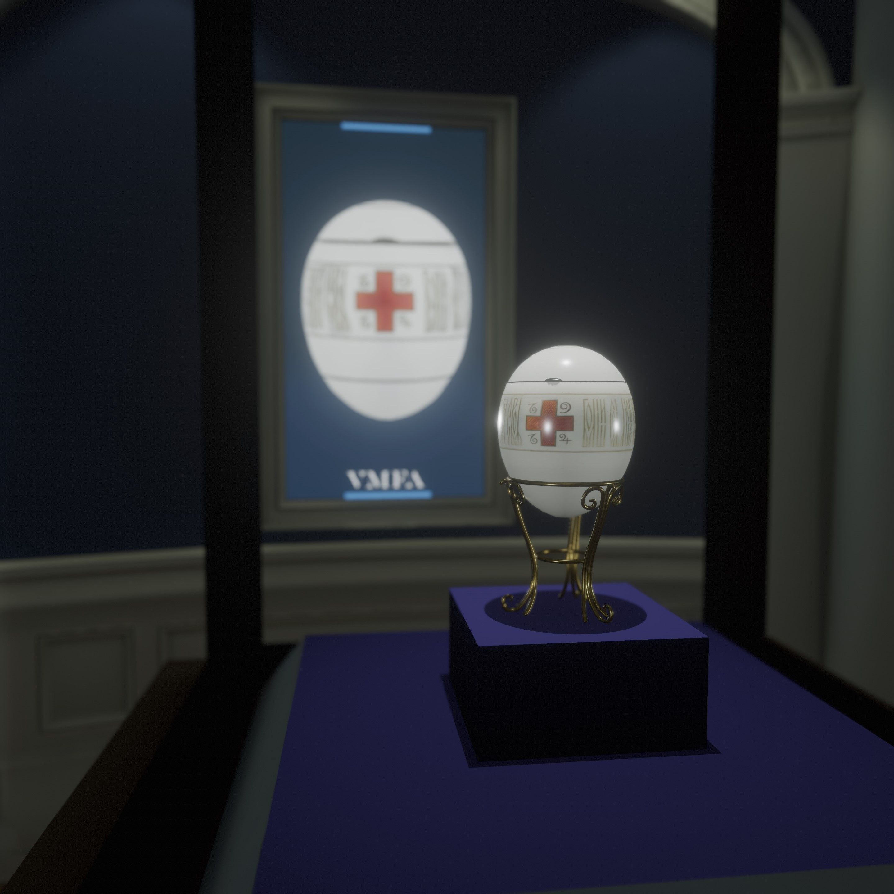 The user starts in the 19th Century European art room and is able to move into the Faberge exhibit, where they can pick up the priceless eggs.